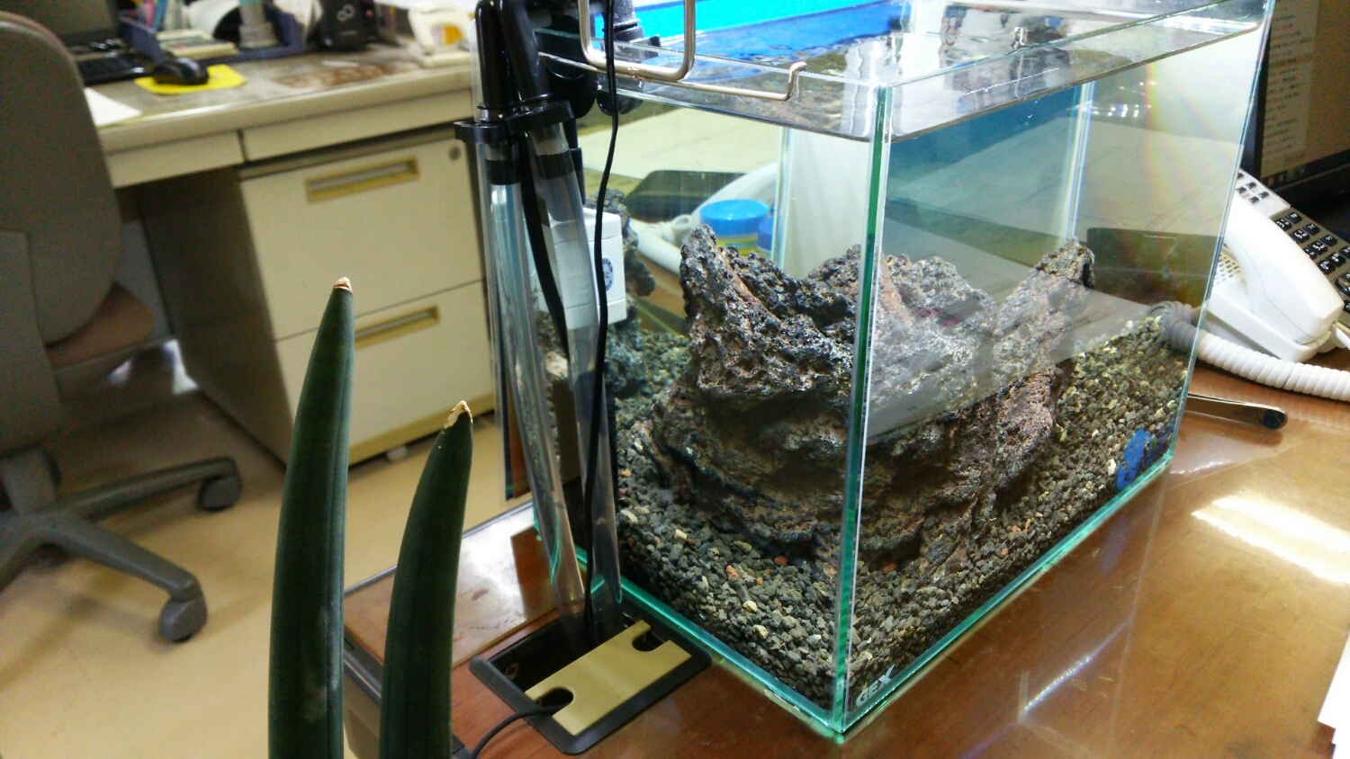 このまま外部なら小型水槽なので水流を弱めに循環させるのもアリだと思います(^^)