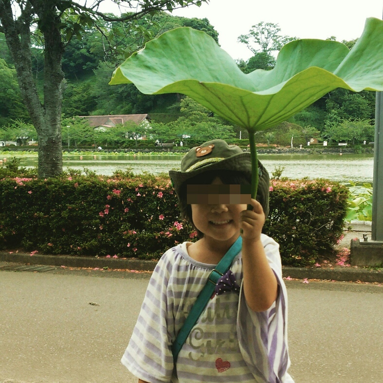 蓮の葉っぱを取ってあげると、キラッキラ目を輝かせて