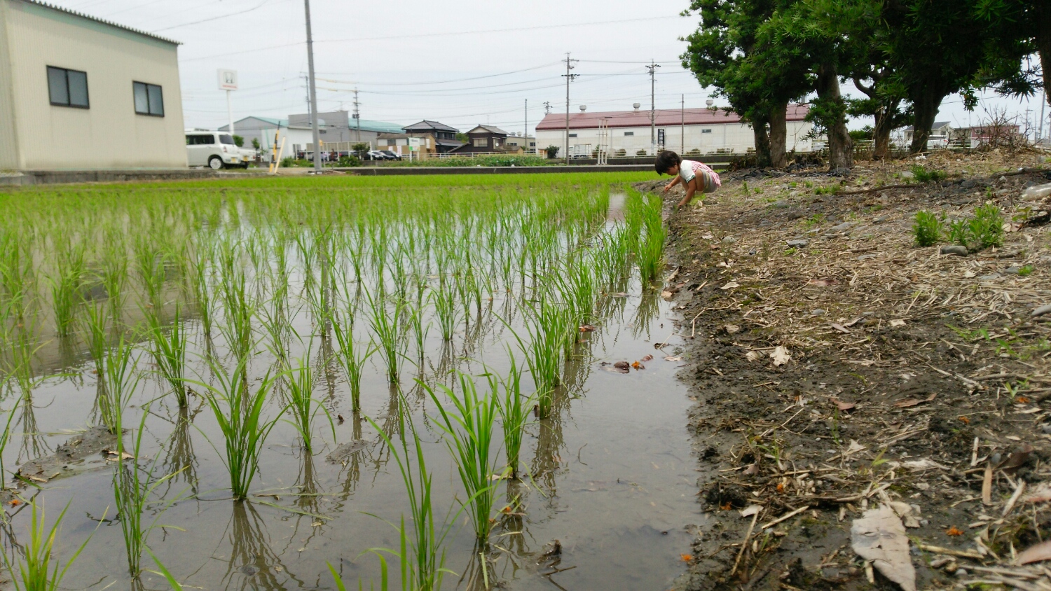 田植えしたばっかりの田んぼですので、タモは危険なので・・・(^^ゞ
