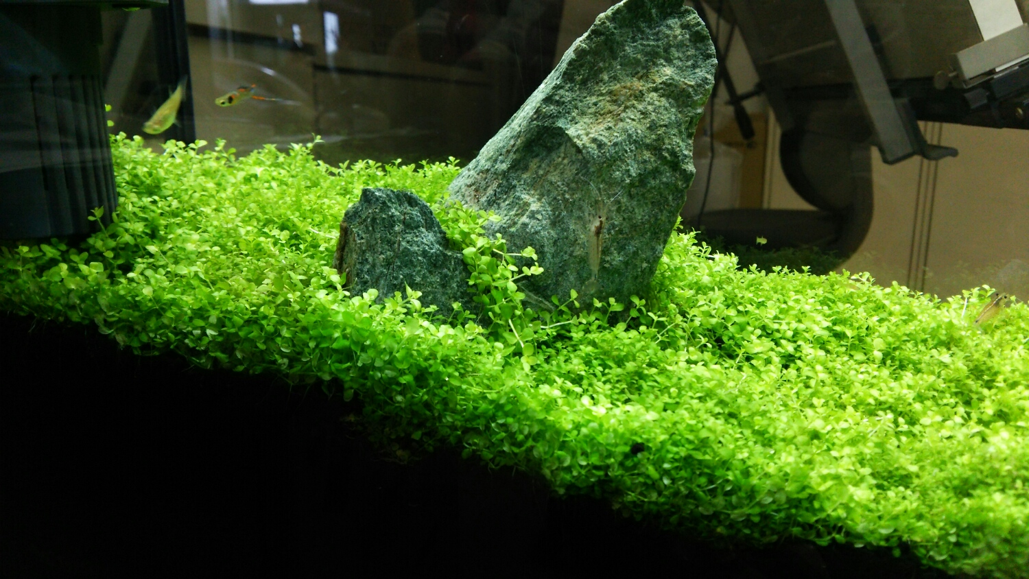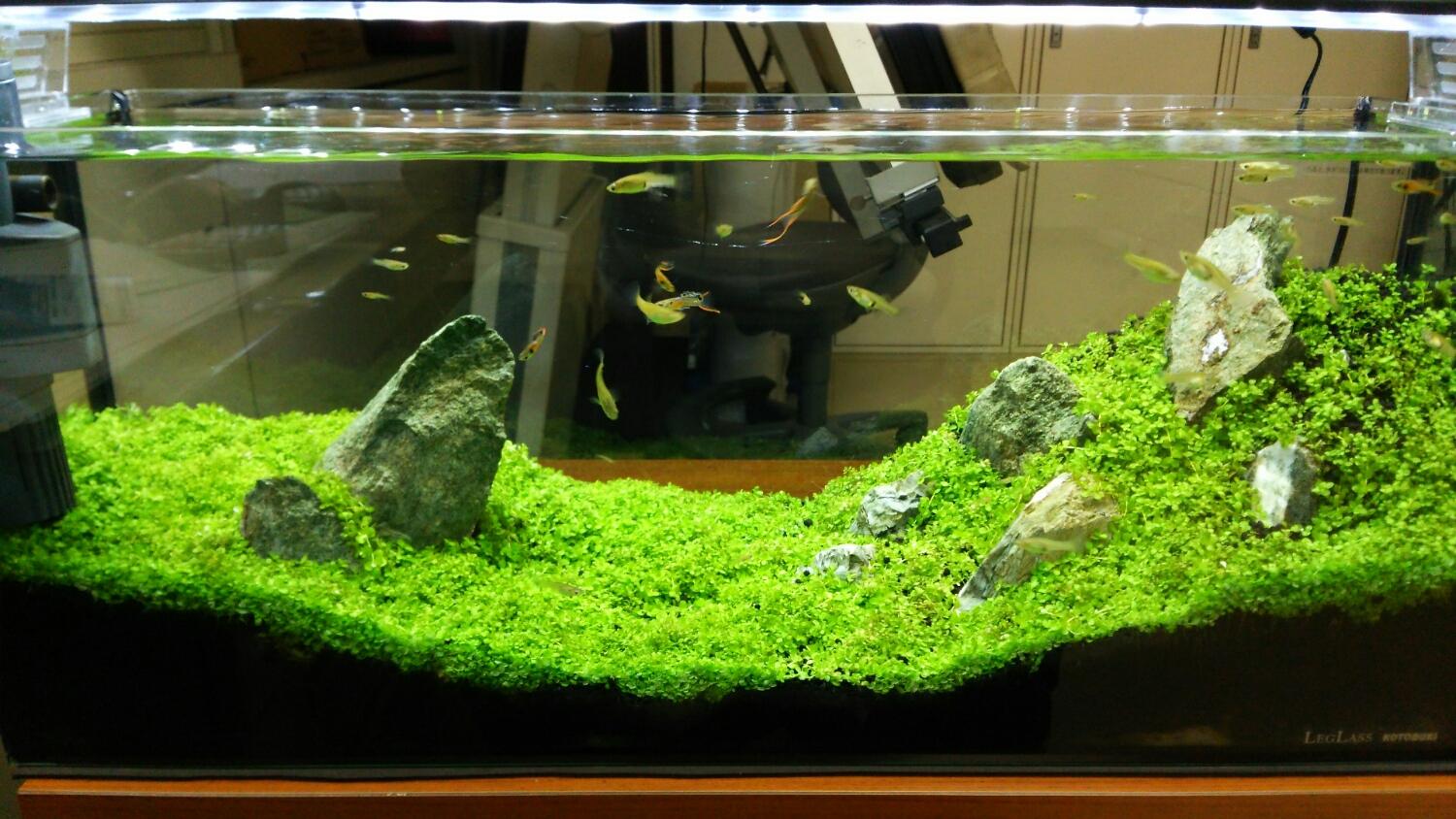 前回の会社ウエルカム水槽は、ソイルふりかけ戦法、やりましたよ。