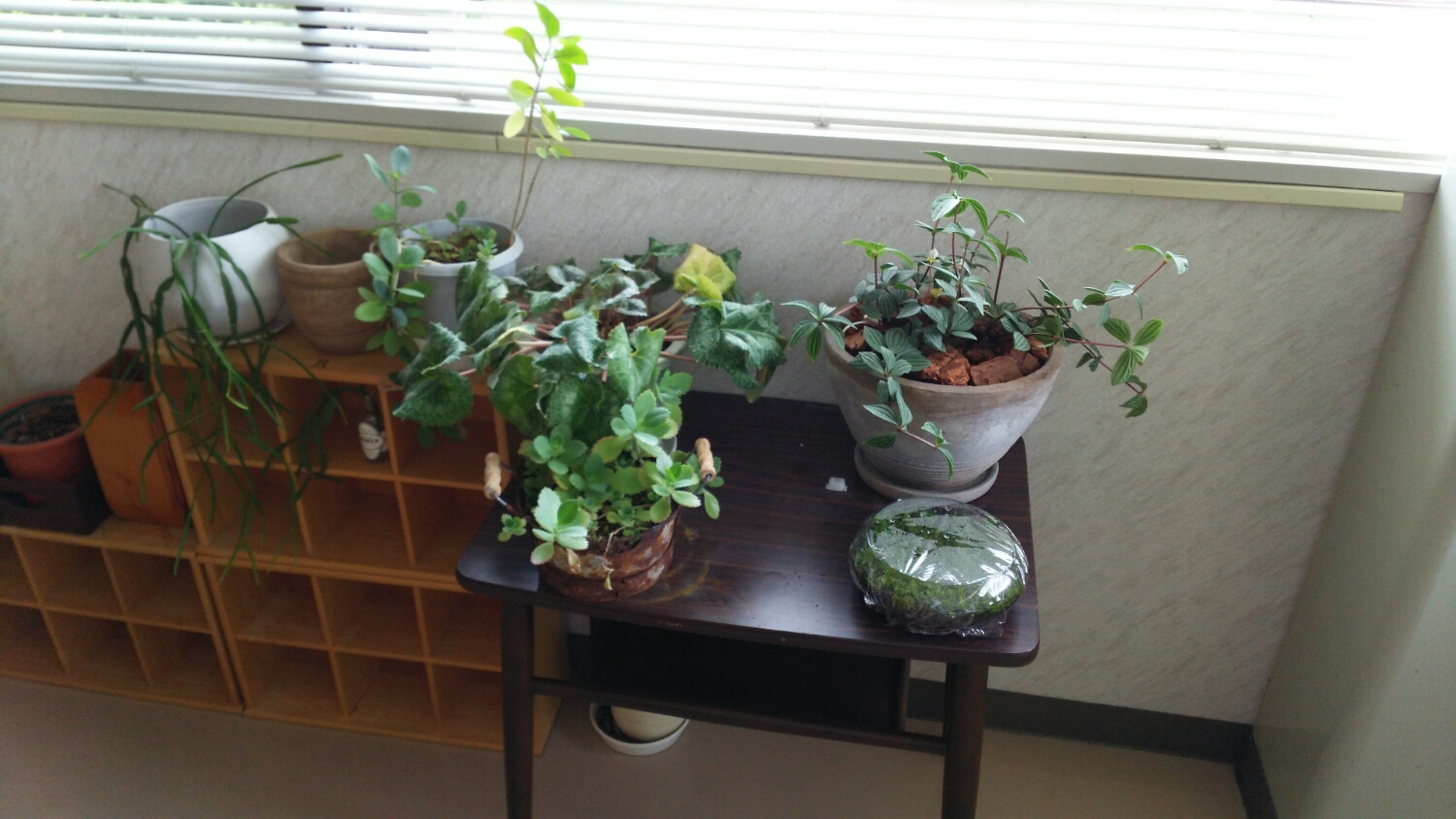 別の部屋の観葉植物脇に置いた丸いガラス容器の方は・・・