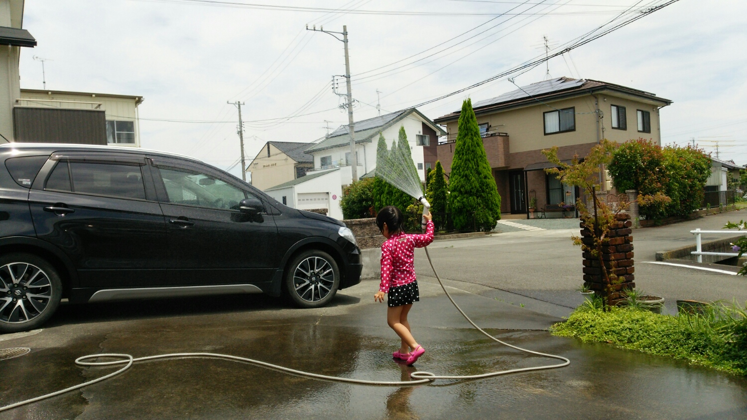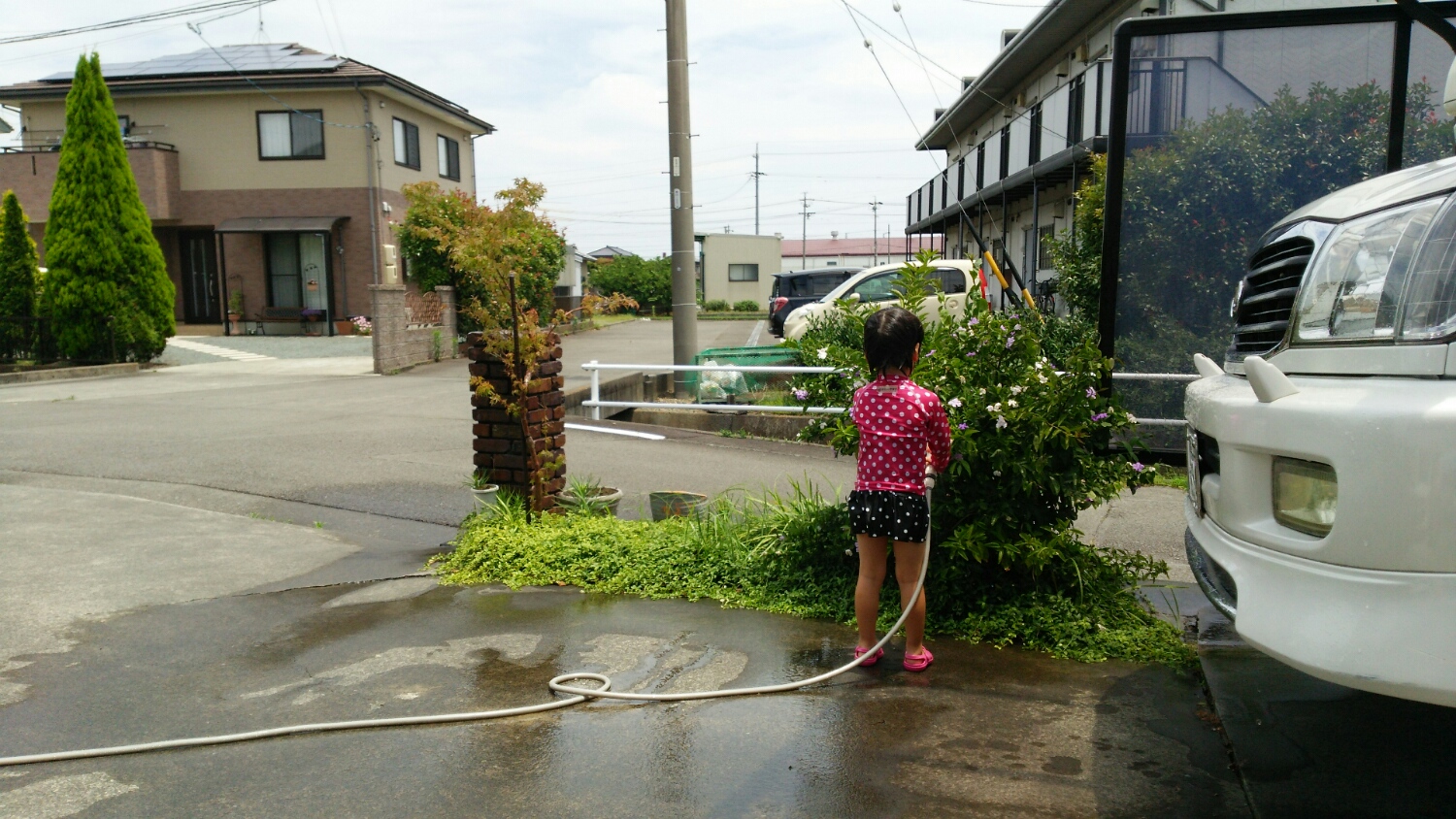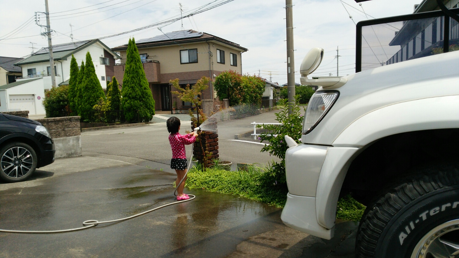 んで結局、車にも盛大に水をぶっかけてくれて、洗車することに。。。