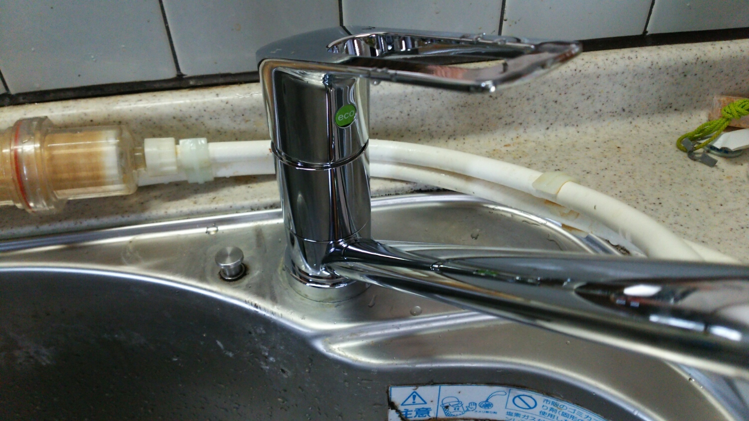 ホームセンターで混合栓を仕入れ、既存の混合栓を撤去・・・