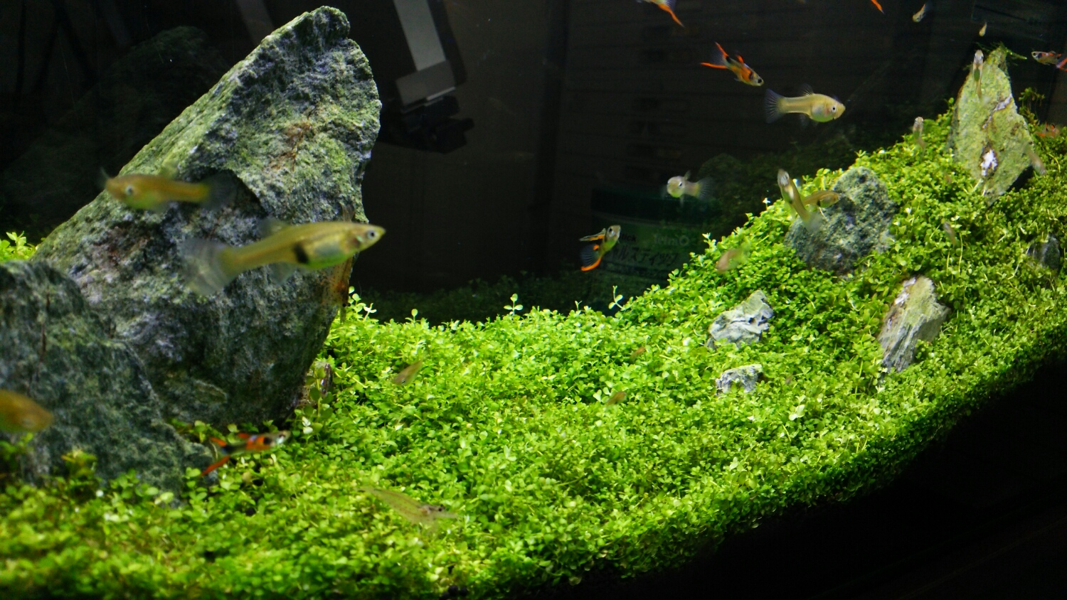 週末定例w完全遮光明け の60slim水槽。。。