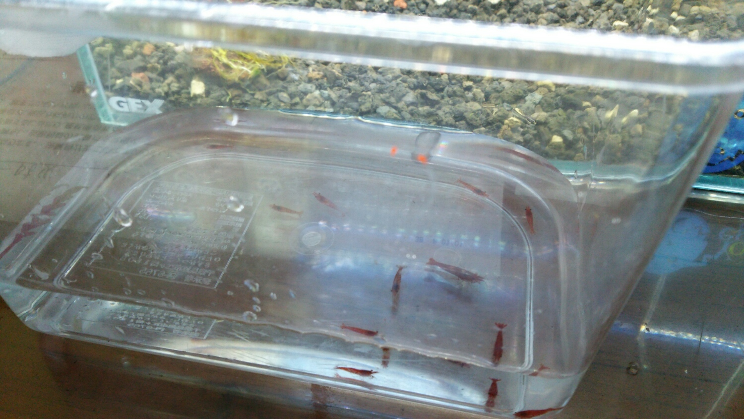 ファイヤーレッドチェリーシュリンプを捕まえて・・・っとw