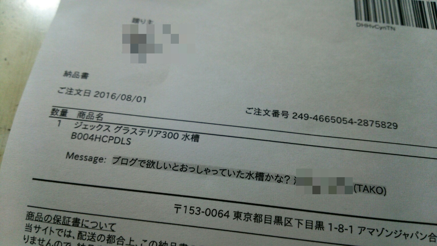 『ブログで欲しいとおっしゃっていた水槽かな?』〇〇〇〇〇(TAKO)