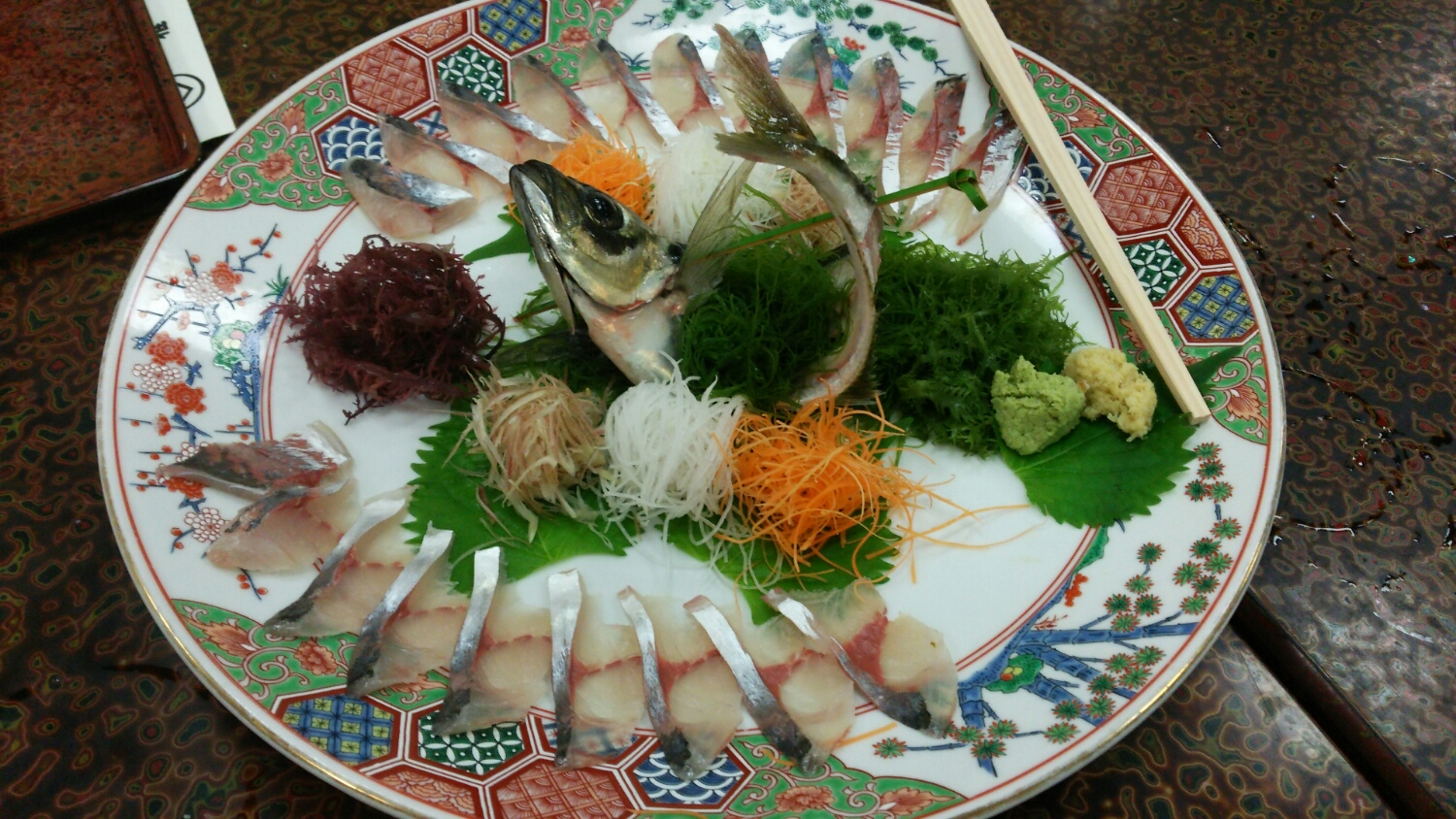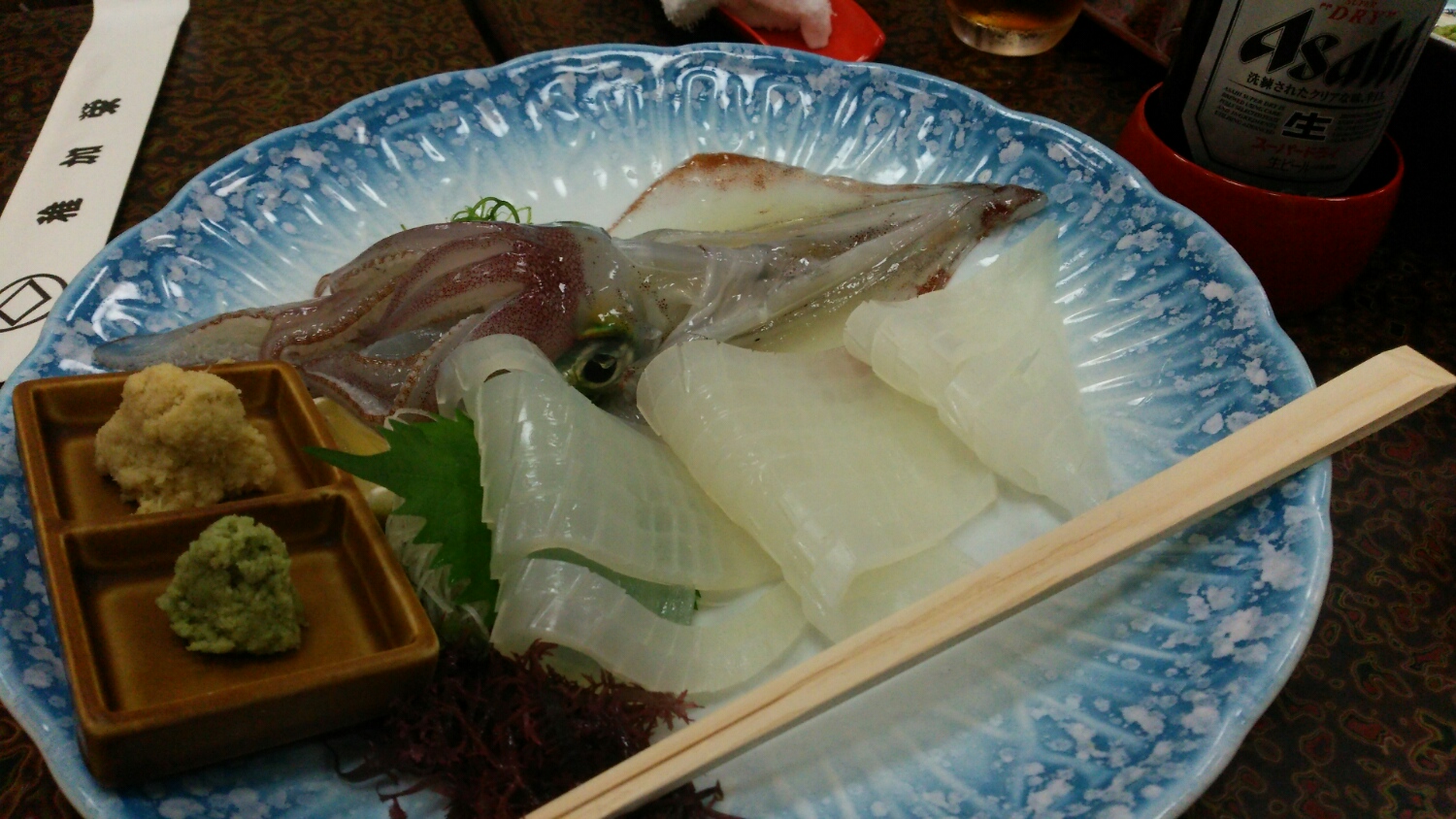 料亭のお料理の写真は、追加注文の「イカ刺し」と「鯵のお刺身」だけ・・・