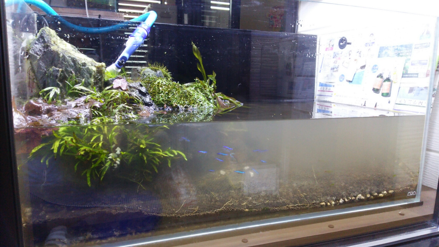前景部分のソイルをほぼ排出した自宅ウエルカム水槽・・・