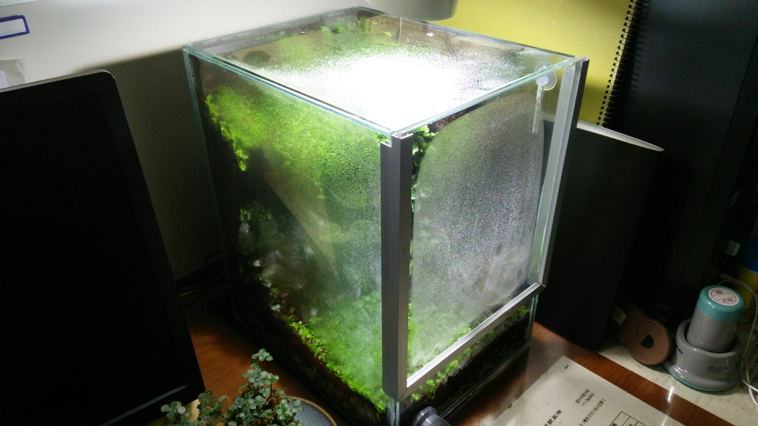 自宅の簡易温室水槽は、5cmほど水を張ってヒーターで加温したんです。