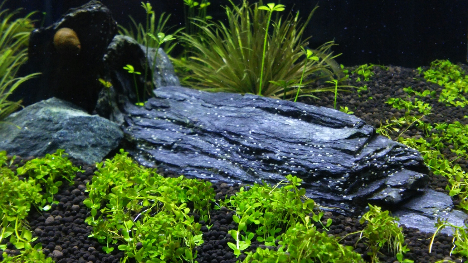 石巻貝はコケ取りには最強だと思うのですが、時期になると白い点々をつけていく・・・