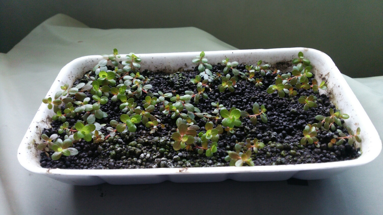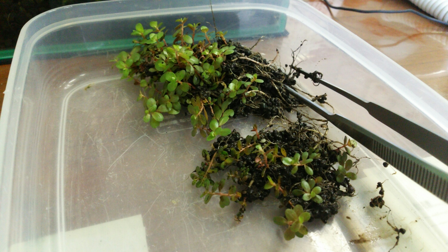 プラケースがなかったので、食品トレーにソイルを入れて・・・(^_^;)