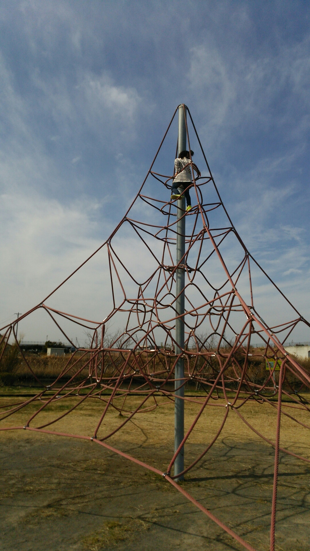 自分で「一番高い所まで行って自分で降りてくる!」と決めたようで、二回目のチャレンジでは最後まで登り切り、降りる時も手助けなしで降りてきましたw