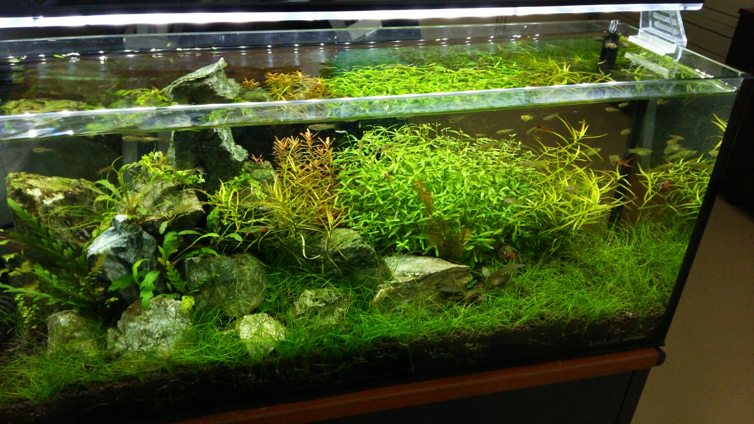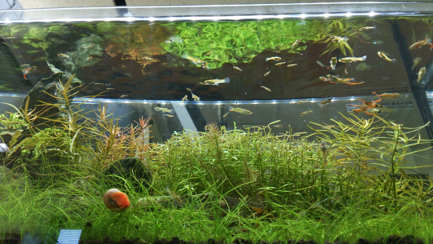 LED追加(青い光源もあるヤツ)、消灯時間から段ボールを被せる、CO2少し増量、カリウム少し増量・・・