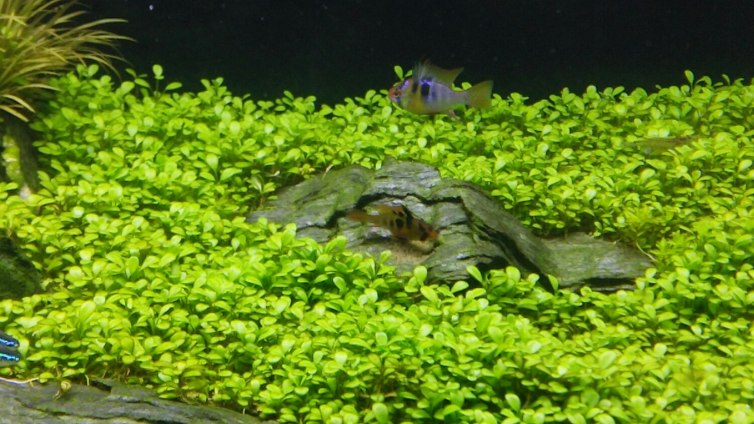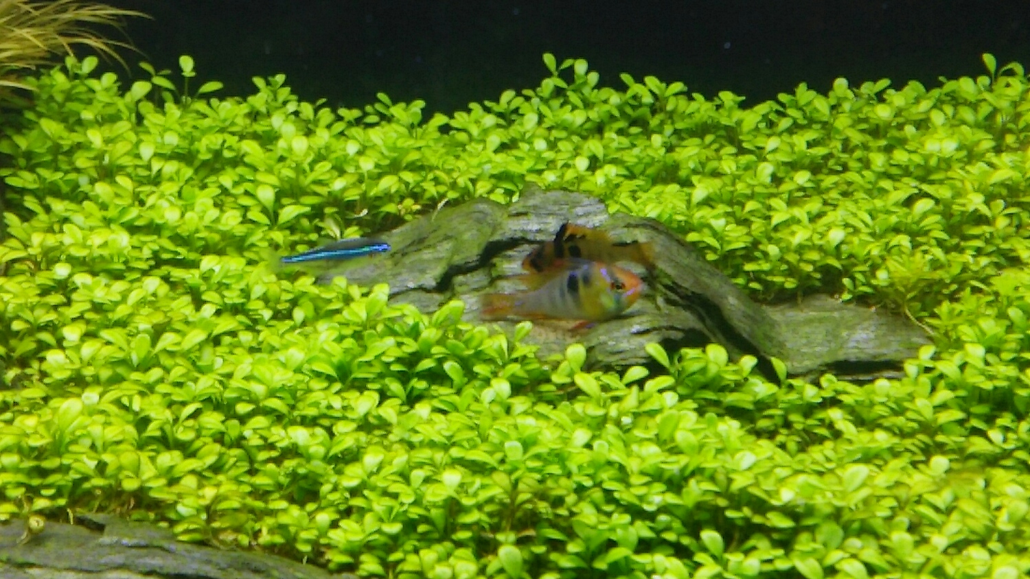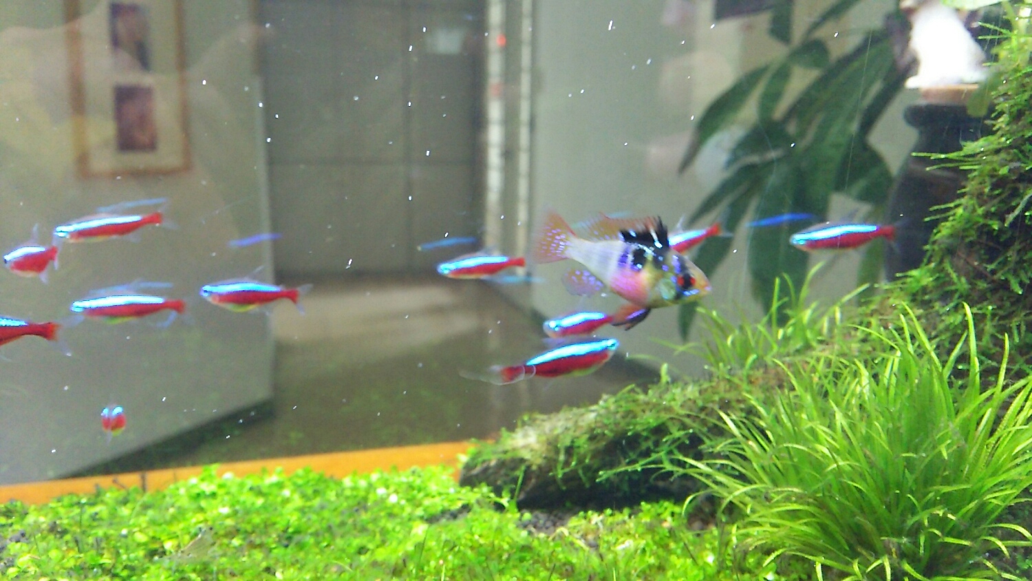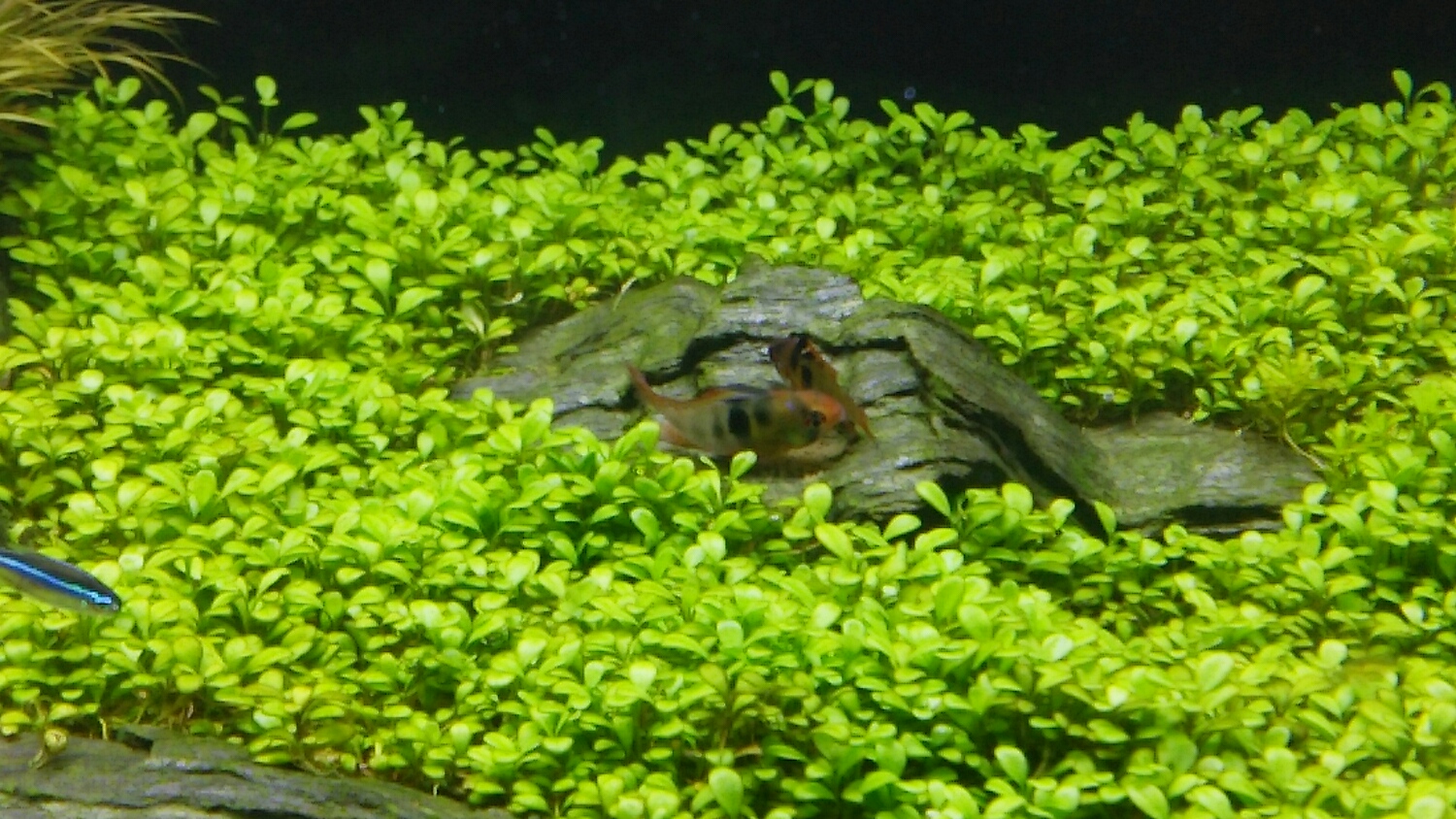 もう1匹のメスのみならず、インディアングラスフィッシュ、グリーンネオン、サイアミ、オトシン、ヤマトヌマエビ。。。