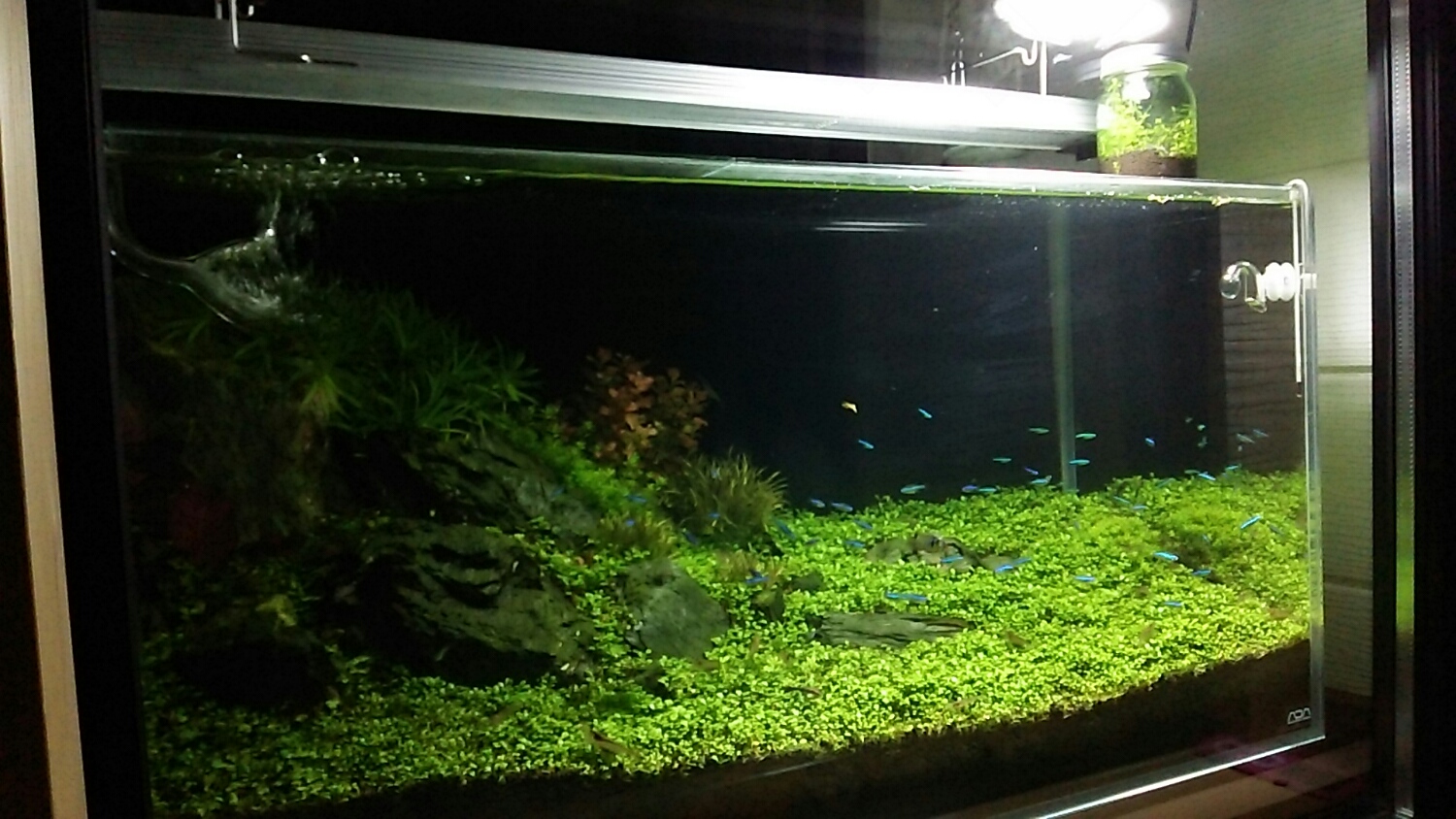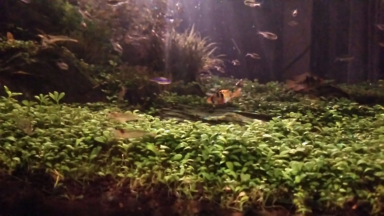 何となく、水槽内が見渡せる程度の明るさです。