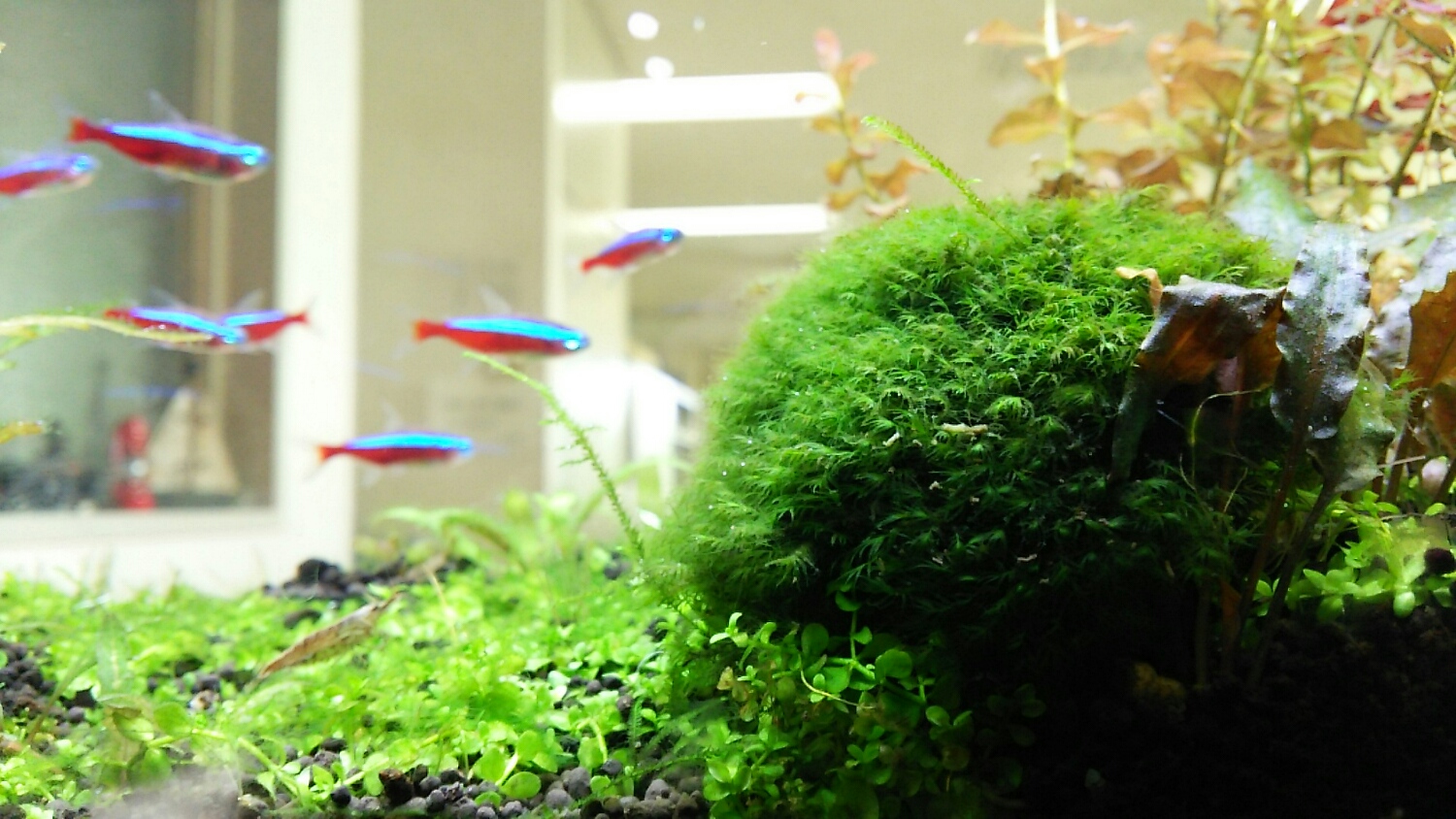 絶賛コケ増殖中な会社のウエルカム水槽。。。
