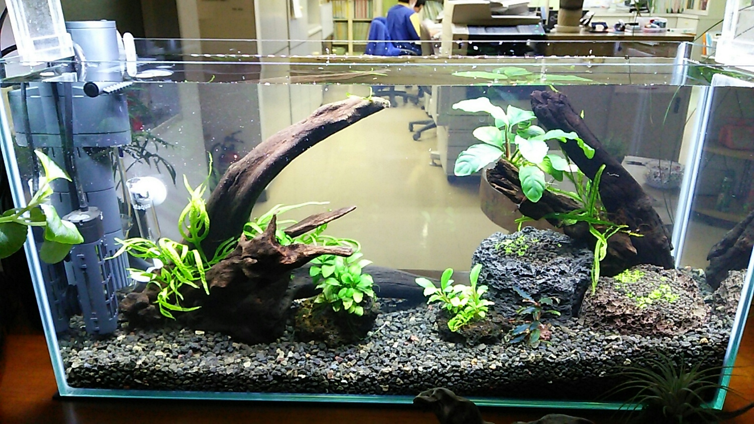 会社のウエルカム水槽に超控えめに水草を足しました✨