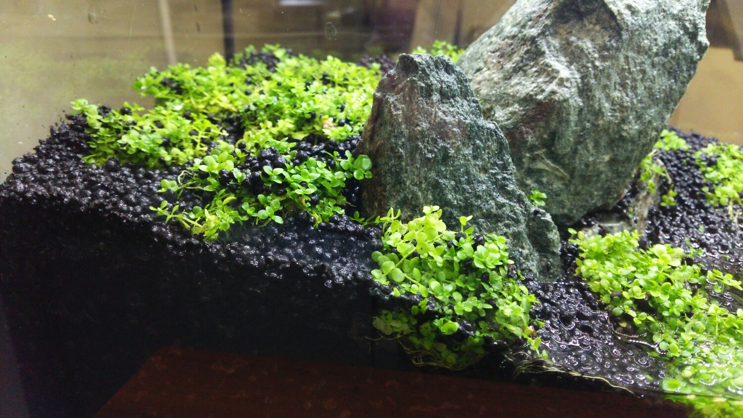 注水の予定は、まだ未定ですが、右上の傾斜部分のソイルから葉っぱが生え揃ったら・・・ですかねぇ(^_^;)