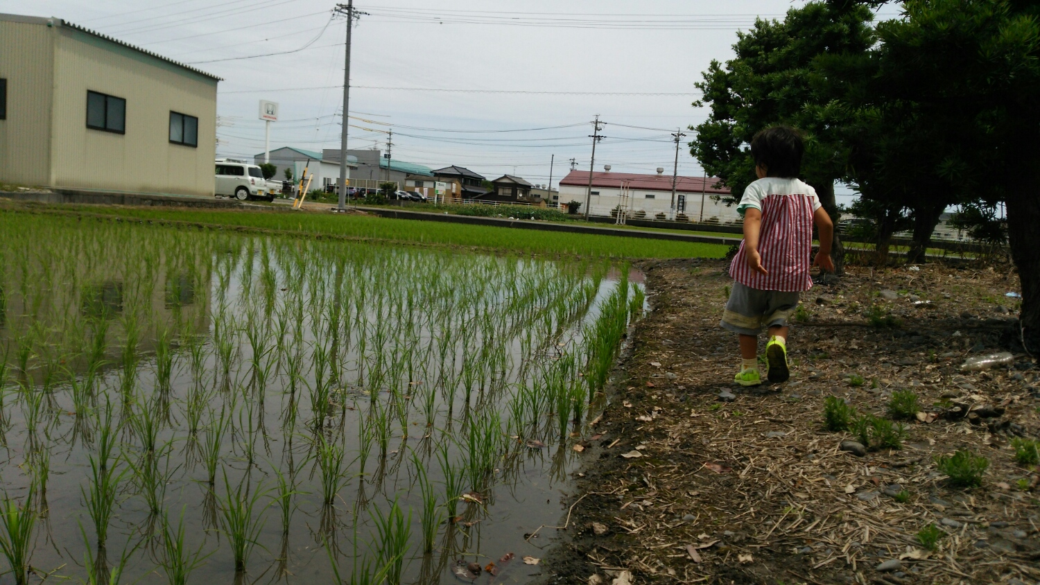 田植えしたばっかりの田んぼですので、タモは危険なので・・・(^^ゞ