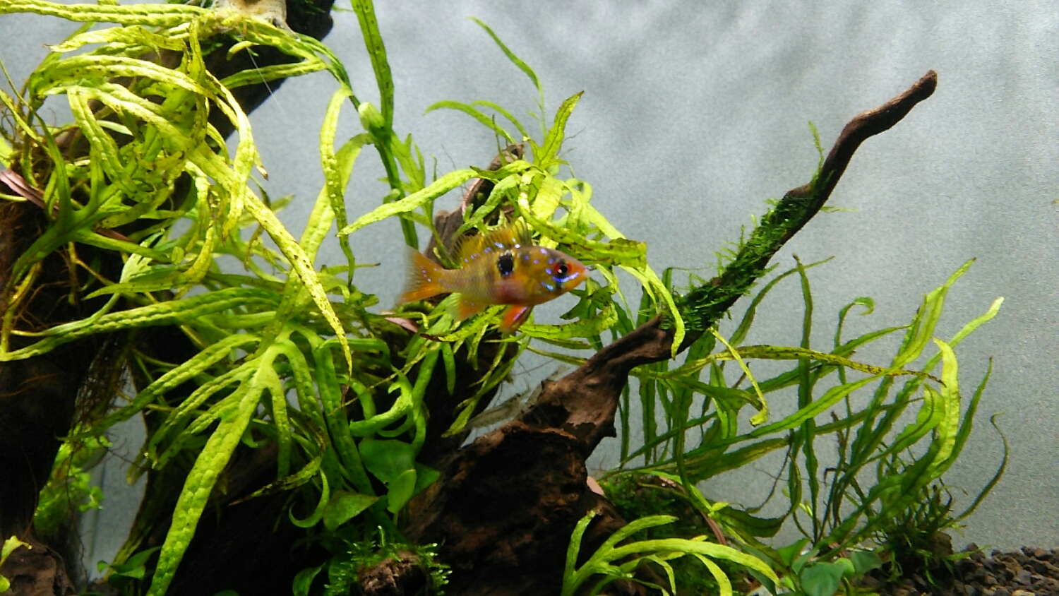 貝取り役に抜擢されたラム♀が、『強さ』を発揮してくれてましたので、申し訳ないんですが、別の水槽に移動してもらうことに。。。(^_^;)